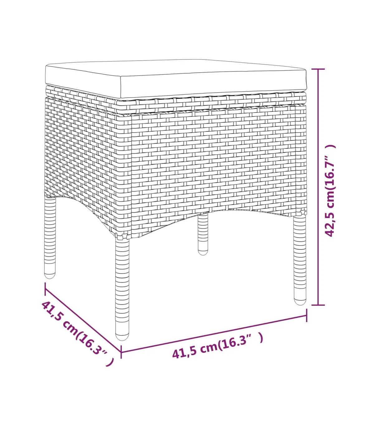 - Dimensiones del taburete: 41,5 x 41,5 x 42,5 cm (ancho x profundo x alto)