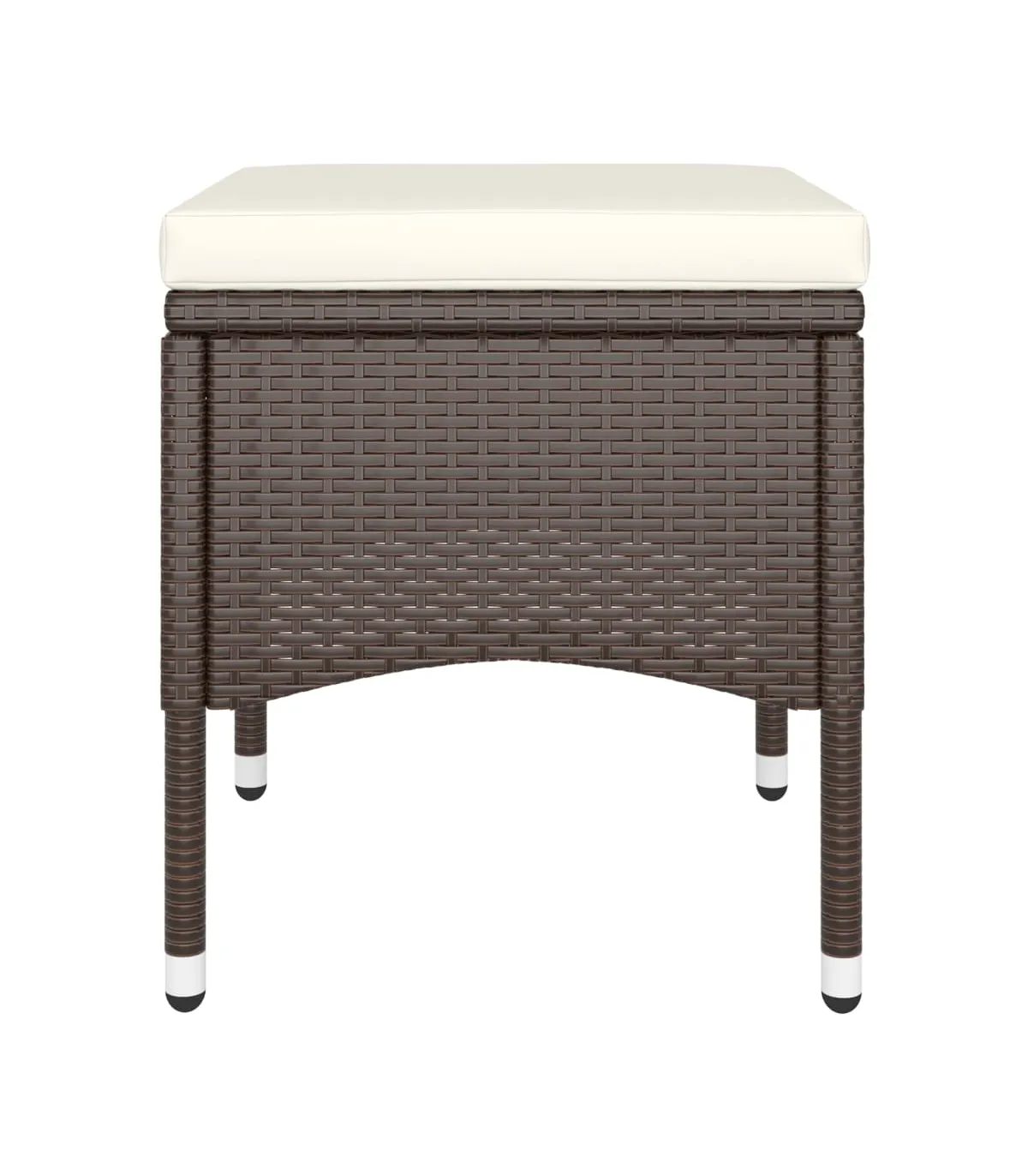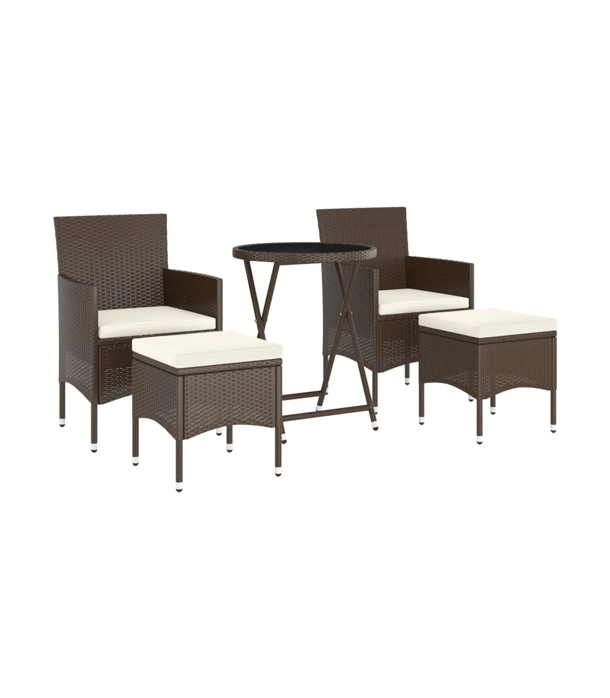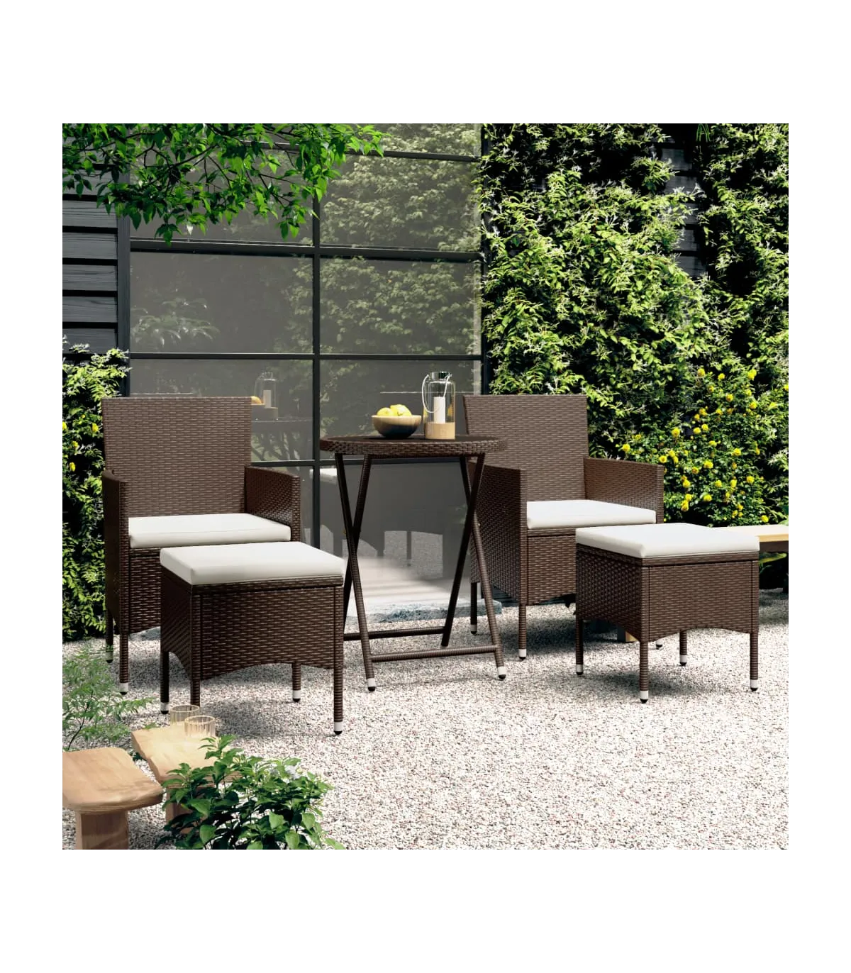 Este elegante juego de muebles para el jardín te brinda momentos agradables y cómodos con tu familia y tus amigos. Con una estructura de acero con recubrimiento en polvo cubierta con ratán PE resistente a la intemperie y protección UV, la mesa y las sillas son duraderas y estables. Diseñadas con reposabrazos y respaldo curvado, las sillas son muy cómodas. Se incluyen cojines para una mayor comodidad y la funda de cremallera se puede quitar para facilitar la limpieza. La superficie de la mesa está hecha de vidrio templado reforzado con un soporte fuerte, por lo que es fácil de limpiar y de cuidar. Los dos reposapiés también pueden servir de asiento. Asimismo, la construcción ligera hace que cada pieza sea fácil de mover, reorganizar y transportar. Nota: Para prolongar la vida de tus muebles de exterior, te recomendamos que los protejas con una funda impermeable.