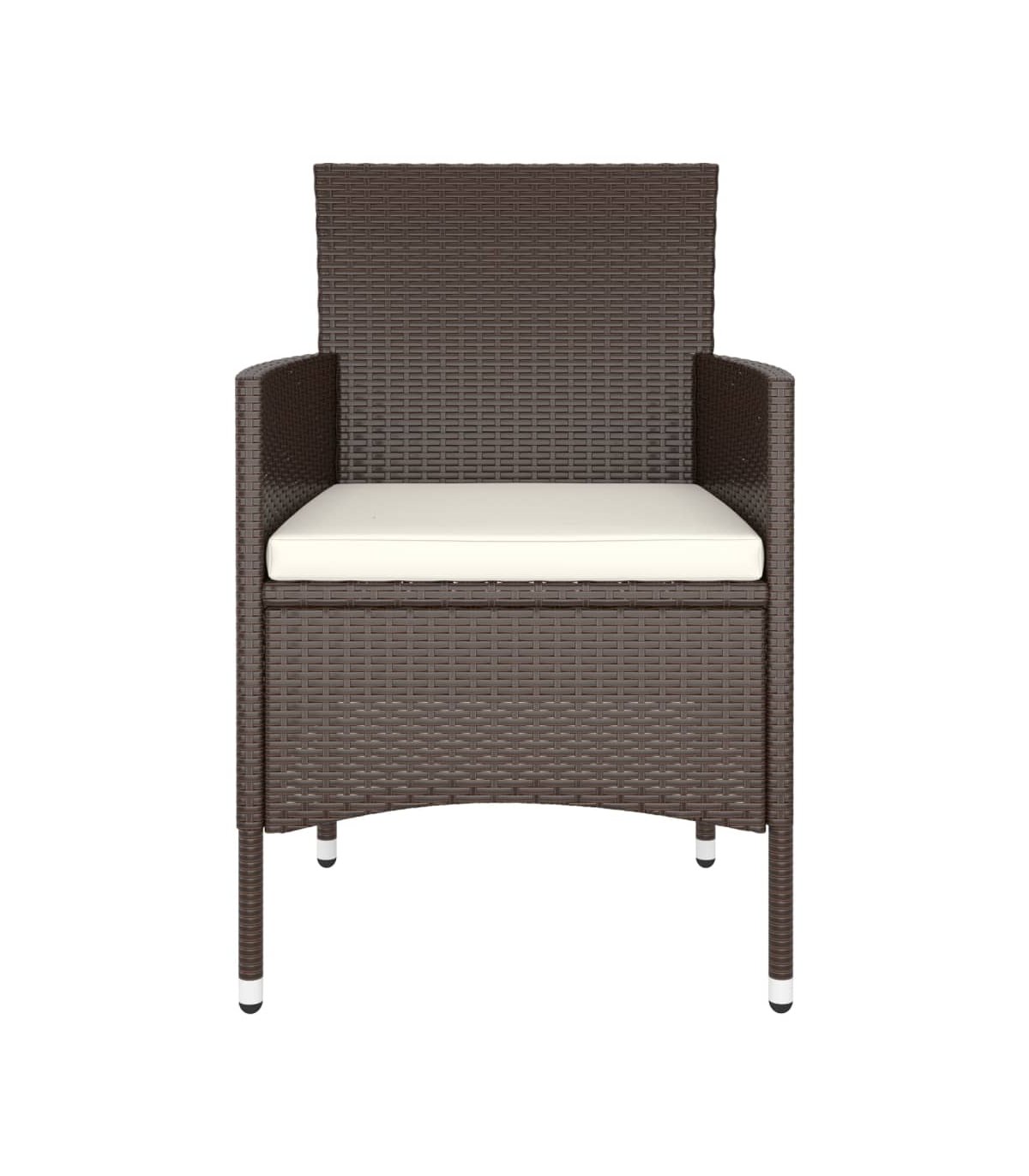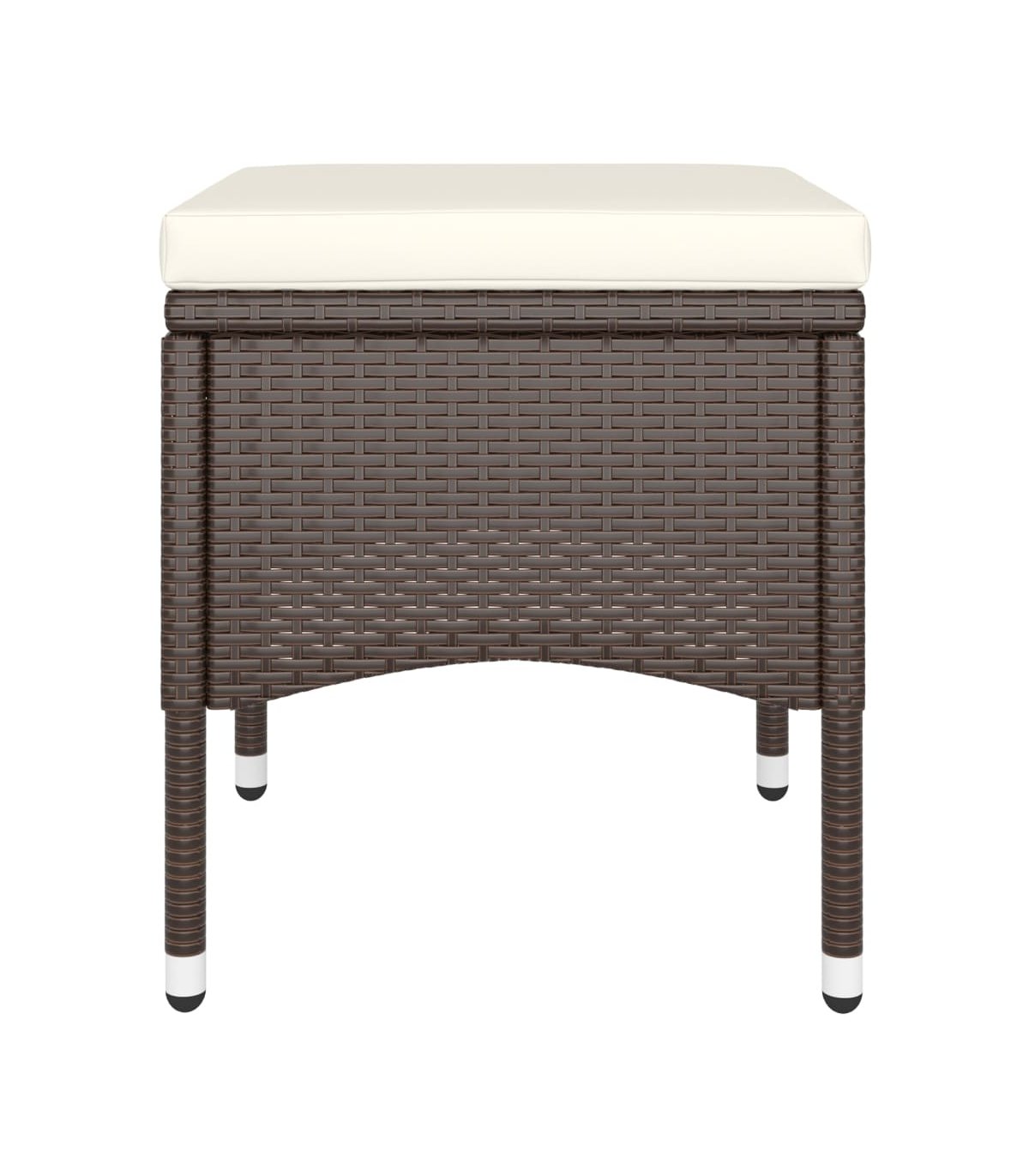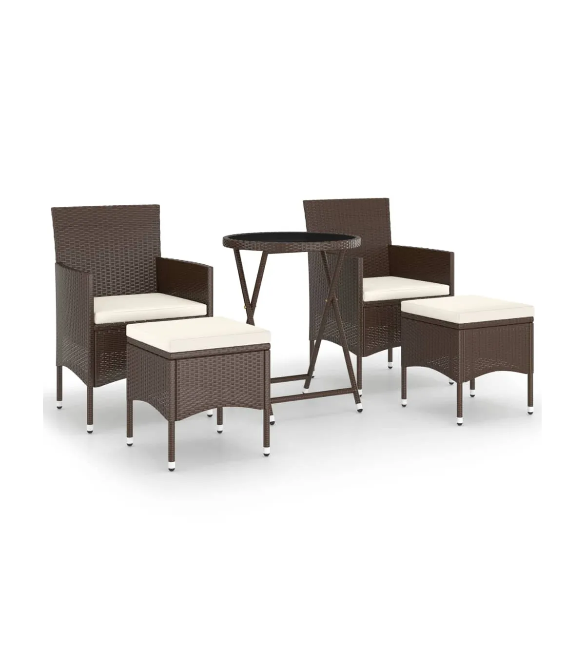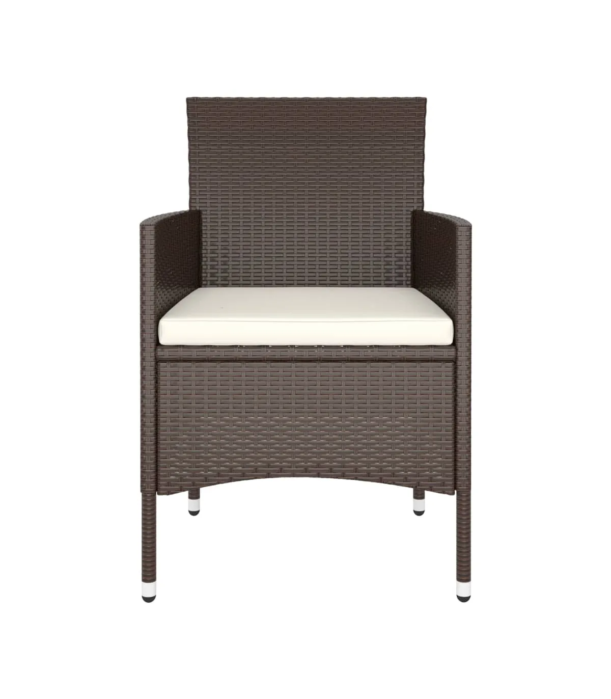 Este elegante juego de muebles para el jardín te brinda momentos agradables y cómodos con tu familia y tus amigos. Con una estructura de acero con recubrimiento en polvo cubierta con ratán PE resistente a la intemperie y protección UV, la mesa y las sillas son duraderas y estables. Diseñadas con reposabrazos y respaldo curvado, las sillas son muy cómodas. Se incluyen cojines para una mayor comodidad y la funda de cremallera se puede quitar para facilitar la limpieza. La superficie de la mesa está hecha de vidrio templado reforzado con un soporte fuerte, por lo que es fácil de limpiar y de cuidar. Los dos reposapiés también pueden servir de asiento. Asimismo, la construcción ligera hace que cada pieza sea fácil de mover, reorganizar y transportar. Nota: Para prolongar la vida de tus muebles de exterior, te recomendamos que los protejas con una funda impermeable.